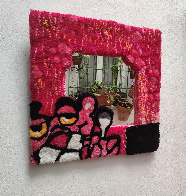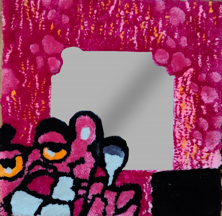 Disfruta del felino rosa más conocido, llena de color tu habitación con este espejo. La zona del bolsillo es personalizable