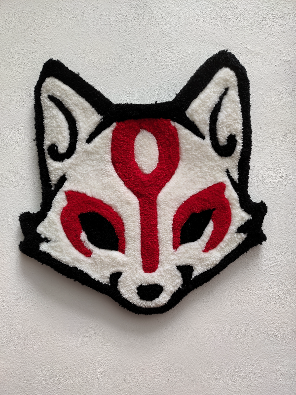 Tapiz de tufting de la cara de un Kitsune un clásico espíritu del folclore japonés déjate seducir por su tacto