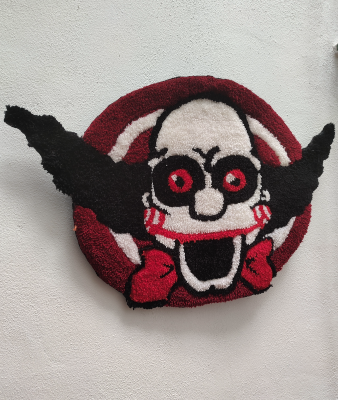 Tapiz de tufting de Krusty el payaso caracterizado de Jigsaw la mejor decoración para amantes del terror y los Simpson.